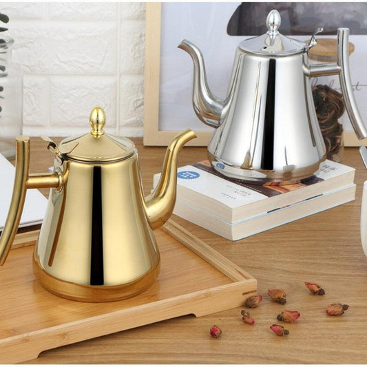 Fashion Gold and Silver Color Tea Pot With Filter Type Hotel Tea Kettle 304 Stainless Steel Water Kettle Water Pot 1L/1.5L/2L (3H1)