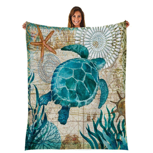 Sea Turtle Flannel Blanket Printing Throw Fleece Blankets For Sofa Home Couch Bedding (4BM)