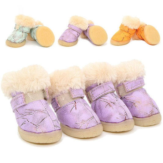 4pcs Warm Pet Dog Cat Shoes - Anti-slip Dog Boots Socks Winter Puppy Cat Rain Snow Booties Footwear (W8)(F69)