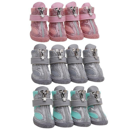 4Pcs/set Reflective Dog Shoes - No-Slip Waterproof Boots Breathable Rain Footwear Paw Protector Outdoor (W8)(F69)