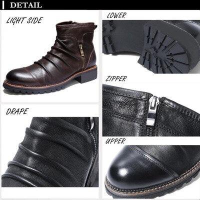 New Winter Men Boots - Thick Plush Warm Men Snow Boots - Leather Ankle Boots Handmade Motorcycle Boots Outdoor Shoes (MSB4)(MSB5)(MSB4A)