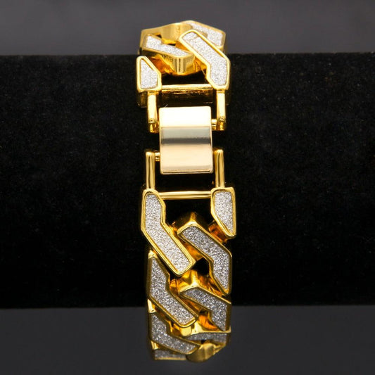 Charm Sand Blast Bracelet Cuban Chain - Men Bling 8.5'' Bracelets Fashion Jewelry (MJ3)(F83)2