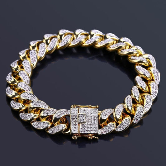 Great Bracelet Copper Iced Out Gold Color Plated CZ Stone 14mm Chain Bracelets With 7" 8" Two sizes (MJ3)(F83)