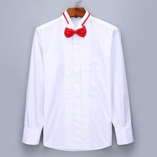 Men Wedding Tuxedo Long Sleeve Dress Shirts - French cufflinks Swallowtail Fold Dark Button Shirt (TM1)(T2G)(F10)(F8)