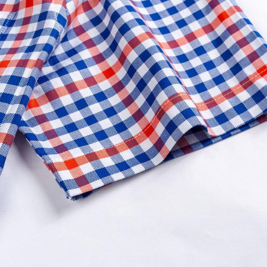 Men's Casual Short-Sleeve Checkered Shirts - Standard Fit Summer Thin - Soft 100% Cotton (TM1)(F8)