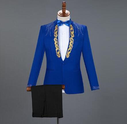 Diamond Suit - Men Wedding Groom Tuxedo Suits - Men's Stand Collar Prom Stage Suits (F8)(T1M)(F10)