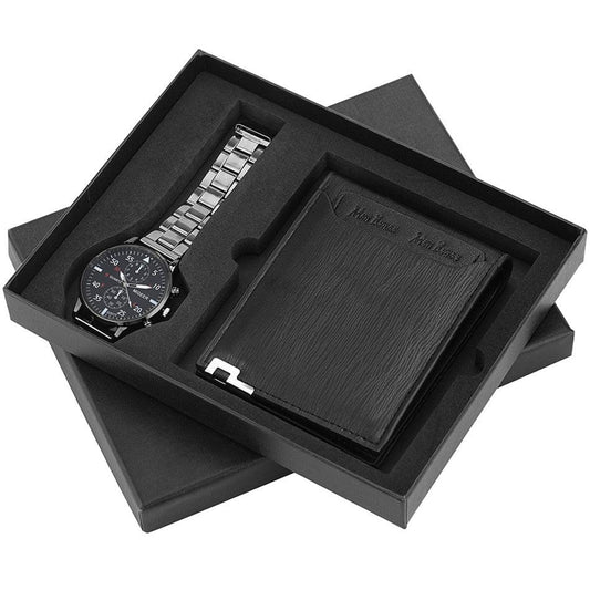 Men Watch Set - Wallet Birthday Gift For Male Quartz Wristwatch (1MA1)(F84)