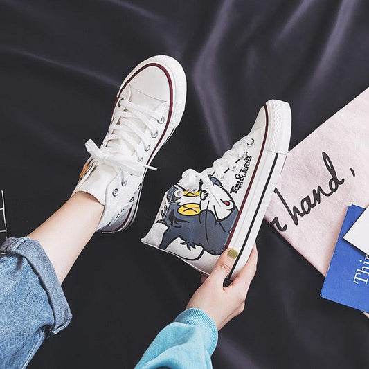 Women's Anime Cartoon Print Patchwork Shoes - Lovely Girls Canvas Thick Heel Sneakers (BWS7)(F41)