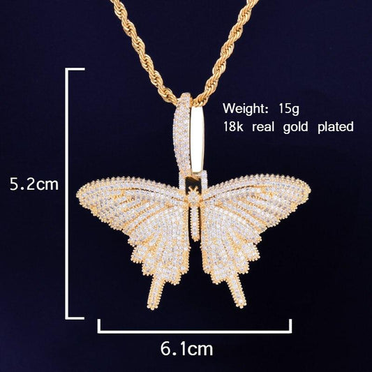 Great Butterfly Pendant Necklace Charm - 4mmTennis Chain & Cuban Chain Gold Color Cubic Zircon Jewelry (5JW)(F81)