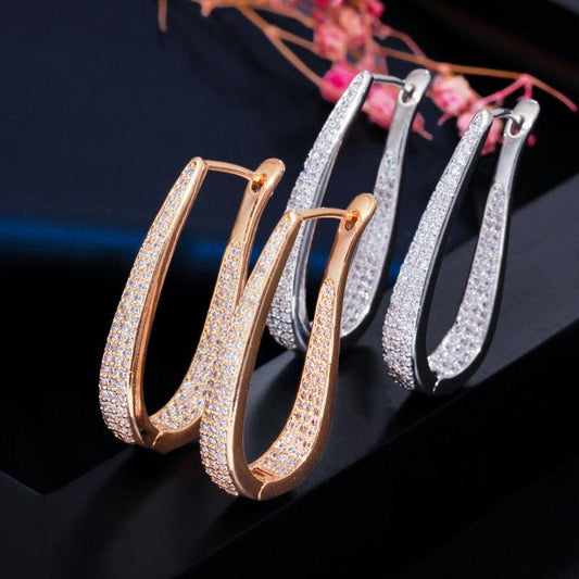 Nice Micro Pave Cubic Zirconia Stone White Gold Luxury Big Hoop Earrings - New Fashion Jewelry (2JW3)(F81)