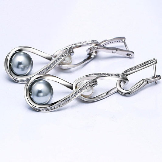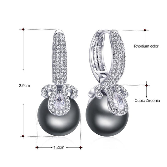 New Luxury Synthetic Grey Pearl Style Earrings - Women Fashion Hoop Style Cubic Zirconia Jewelry (2JW3)(2JW2)(F81)