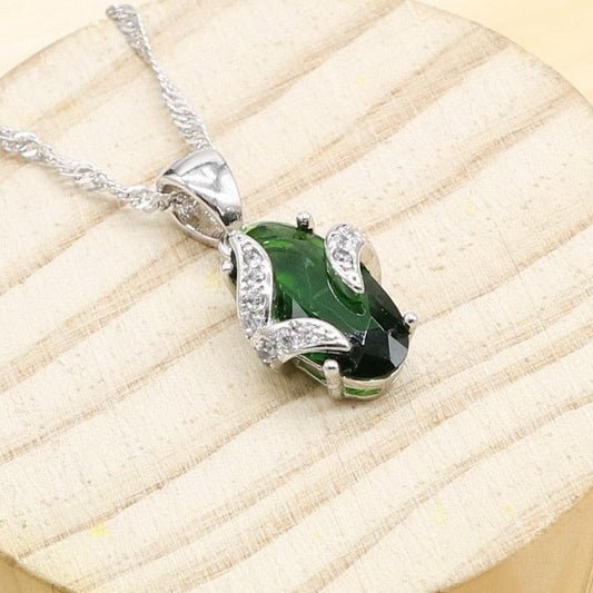 Solid 925 Silver Water Drop Zirconia Diamond Necklace Pendant - Women Gemstone Jewelry (5JW)(F81)