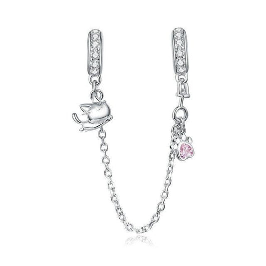 925 Sterling Silver Pave Inspiration Star Safety Chain - Clear CZ Stopper Charms (6JW)(F81)