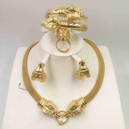 Amazing Dubai Gold Color Necklace, Earrings Collection Fashion Jewelry Set (3JW)(F81)