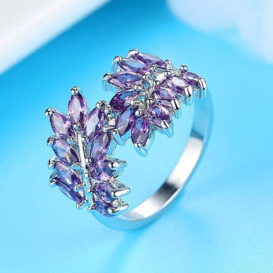 Exquisite Purple Zircon Leaves Rings - Women Shiny Fashion Silver Color Ring - Valentine Day Accessories (7JW)(F81)