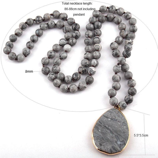 Fashion Bohemian Jewelry Natural Stone Knotted - Matching Drop Pendant Necklaces (5JW)(F81)