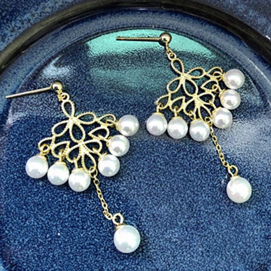 Cute 925 Pearls Drop Earrings - Women 14K Gold Plated Vintage Silver Fine Jewelry (2JW2)(F81)