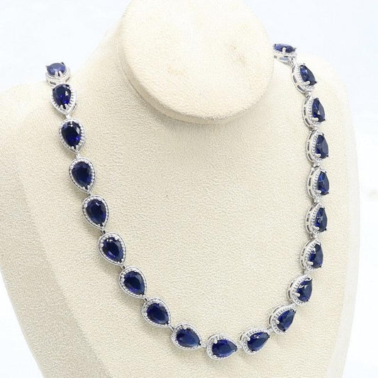 Beautiful Silver Color Necklace - Women Water Drop Blue Green Semi-precious Jewelry (5JW)(F81)