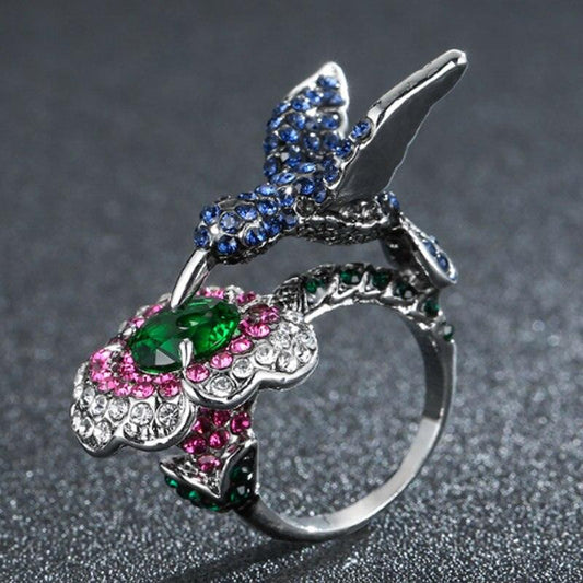 Cute Jewelry Green Cubic Zircon Enamel Birds Flower Rings - Women Party Gifts (7JW)(F81)