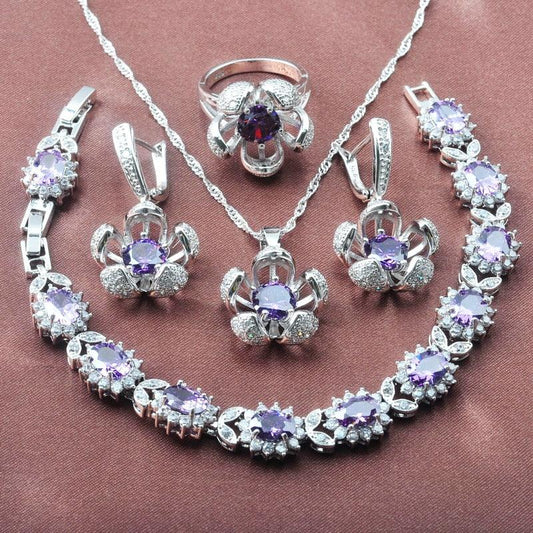Elegant Purple Crystal Bracelet Jewelry Sets - Women Silver Color Party Wedding Jewelry (3JW)(F81)