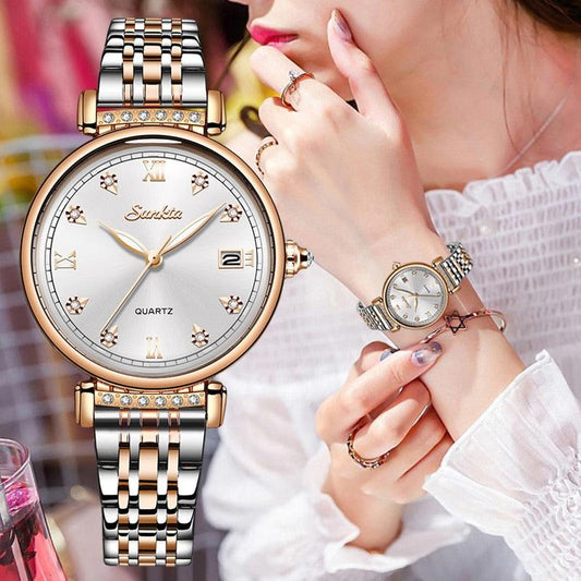 Trending New Fashion Ladies Watches - Luxury Stainless Steel Roman Numeral Display Watch (9WH3)(F82)