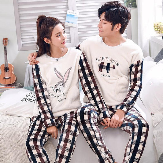 Cute Velvet Couple Pajamas Set - Turn Down Collar Long Sleeve Sleepwear - Leisure Pajama Clothes (ZP3)(F90)