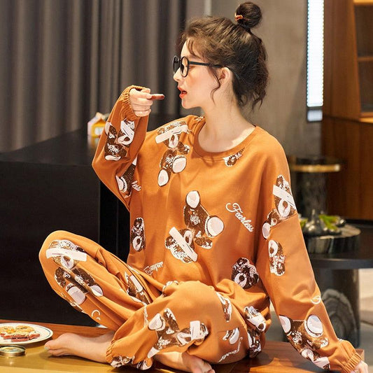 Cute Women's Pajamas Sets - Plus Size - Femme Nighty Casual Cotton Sleepwear - Cartoon V-Neck (ZP1)(F90)