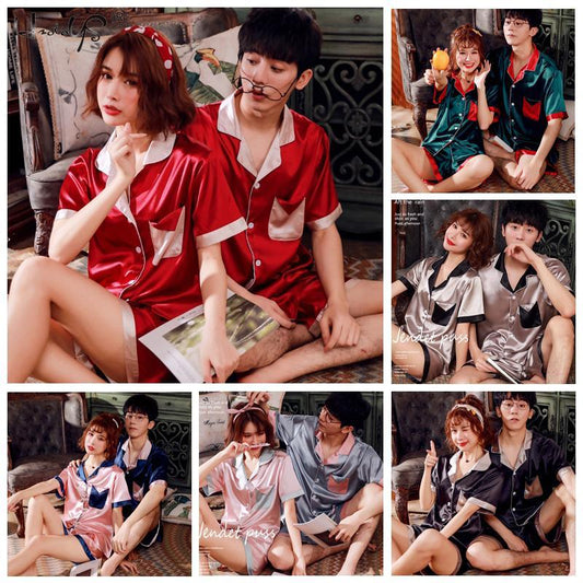 Great Couples Lovers Pajamas Sets - Summer Women & Men Silk Sleepwear Set - Top+ Pants (ZP3)(F90)