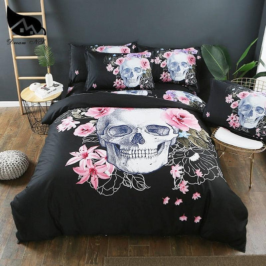 3d flower skull bedding set cotton blend duvet cover set doble/queen/king size bedspread ink painting (7bm)(8bm)(3bm)(f63)