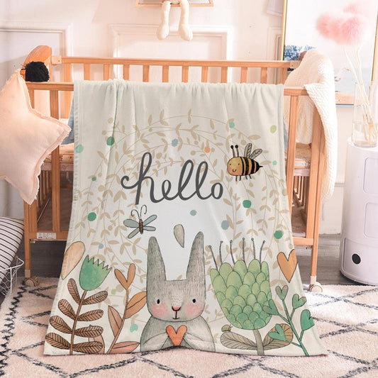 cute rabbit printing flannel blanket for kindergarten cartoon animal throw blankets on bed sofa bedding (4bm)(f63)