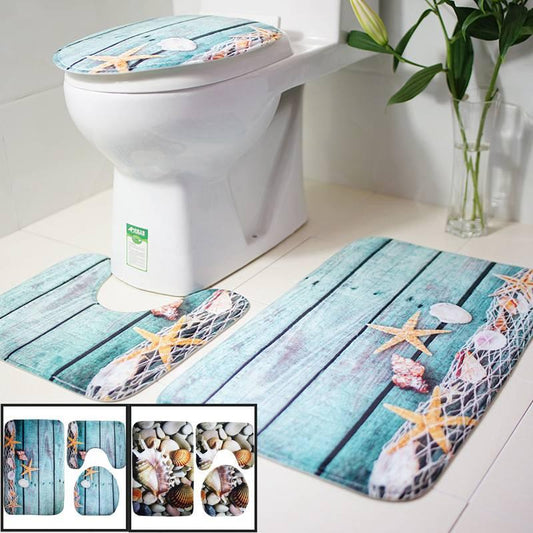 3Pcs/Set Flannel Carpet Mat 3D Print Non Slip Toilet Seat Cover Bathroom Pad Floor Mat Rug Carpet (RU4)(1U68)(F68)