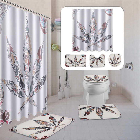 4PC Maple Leaf Pattern Waterproof Shower Curtain and Non-Slip Bathroom Mat Carpeting Toilet Seat Cover Set (RU4)(1U68)(F68)