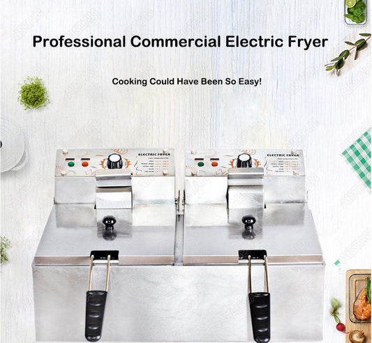 HY81/HY82 Commercial Deep Fryer - Machine Electric Dual Deep Fryer - Oven Stainless Steel Oil Fryer with Thermostat Baskets (H3)(F59)