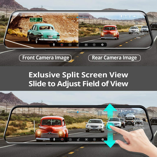 10" mirror dash cam streaming media full-screen touching adas dual lens night vision 1080p front 720p backup car dvr (ct3)(f60)