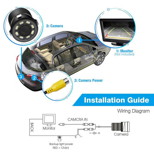 170 Wide Angle HD CMOS Auto Parking Assistance Car Rear View Backup Camera - 8 LED Night Vision Waterproof (CT3)(F60)