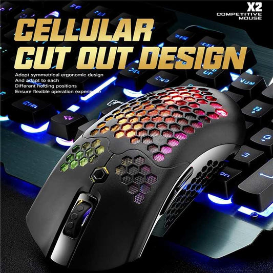 2.4G Wireless Dual Mode Switch Gamer Mouse 12000DPI Ergonomic Hollow Honeycomb Optical Mice For Computer Laptop PC Gaming (CA1)(F52)