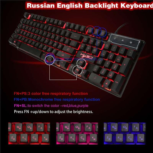 R8 Mechanical Gaming Keyboard 104 Keys Russian English Backlight Waterproof Anti-Skid Gamer Keyboard (CA1)(F52)