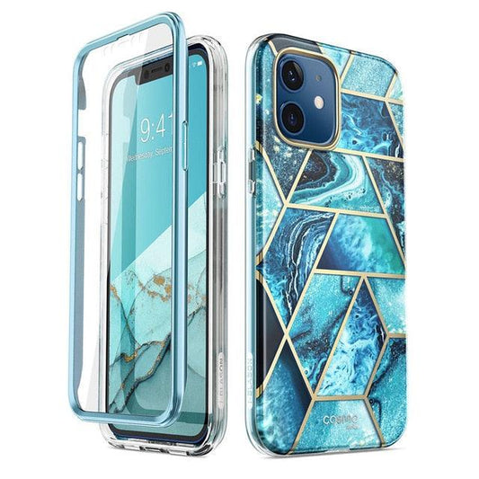 Great iPhone 12 Mini Case 5.4 inch (2020) Cosmo Full-Body Glitter Marble Bumper Case with Built-in Screen Protector (RS6)(1U50)(F50)