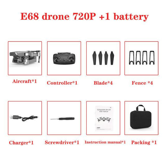 NEW Arrival E68 Drone - HD wide angle 4K WIFI 1080P FPV Drones - Video Live Recording Quadcopter Height To maintain Drone - Camera Toys (5X2)(RLT)(F2)