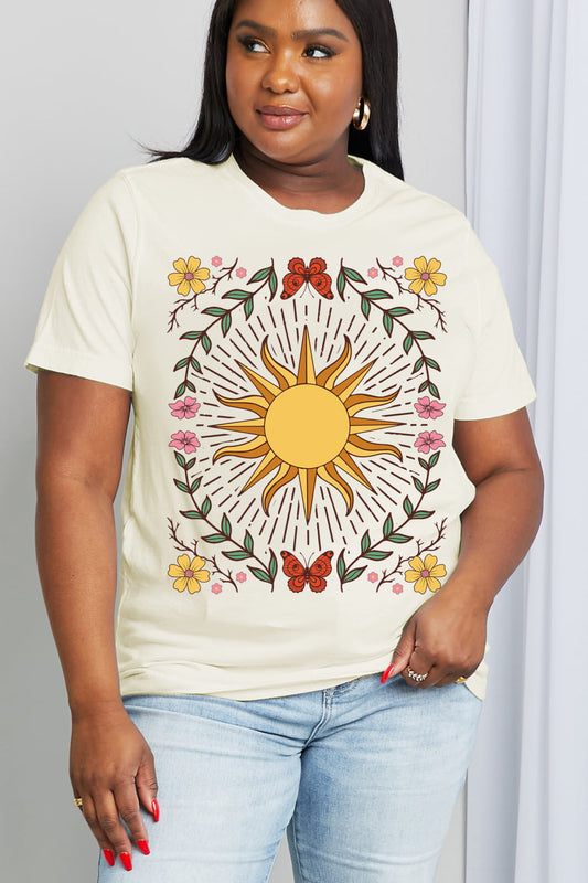 Simply Love Full Size Sunflower Butterfly Graphic Cotton Tee