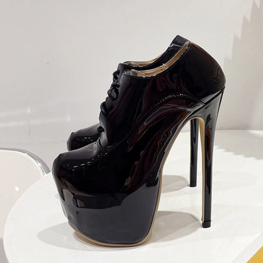 Liyke Spring Autumn Solid Round Toe Extreme High Heels Stripper Pole Dance Shoes Fashion Lace Up Women Platform Pumps Size 35-42