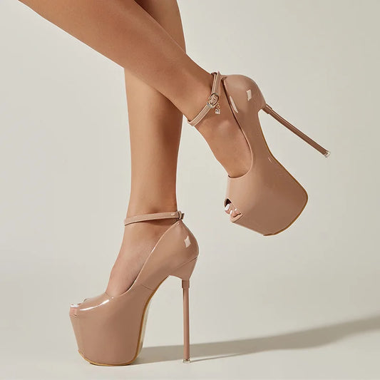 Liyke Size 35-41 Sexy Peep Toe Extreme High Heels Women Party Wedding Banquet Stiletto Shoes Fashion Buckle Strap Platform Pumps