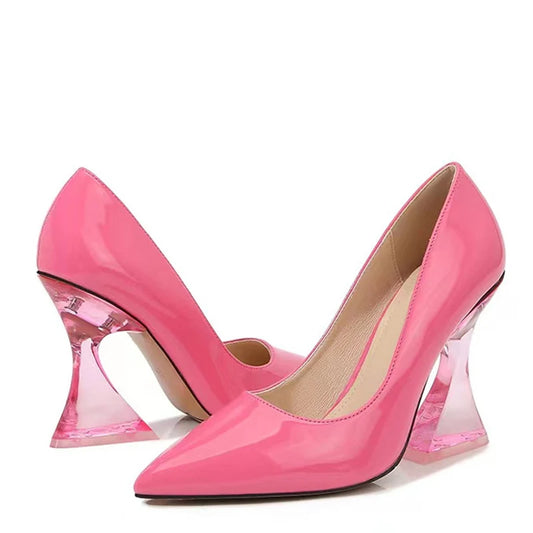 Liyke Size 44 45 46 Mules Woman Pumps Strange Style Transparent Red High Heels Sexy Pointed Toe Slip-On Lady Wedding Shoes Bride