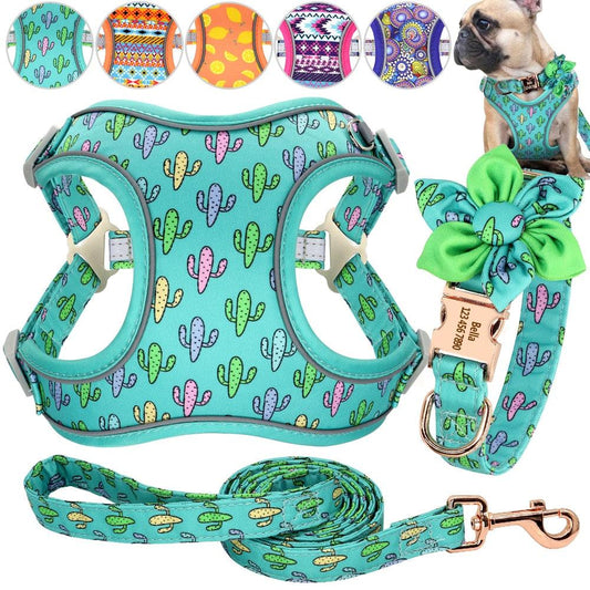 Custom Nylon Dog Collar Harness Leash Set - Personalized Nameplate ID Tag Collars Adjustable (3W1)(2W1)(1W1)(F70)