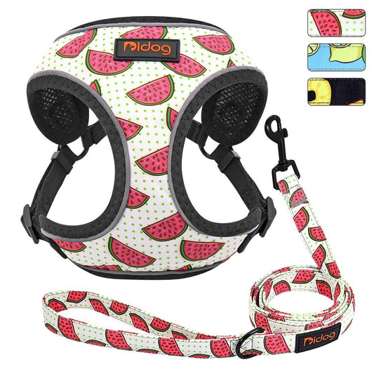 Cute Adjustable Dog Harness Leash Set - Reflective Mesh Puppy Vest Nylon Pet Walking Leash Lead For Small Medium Dogs (2W1)(3W1)