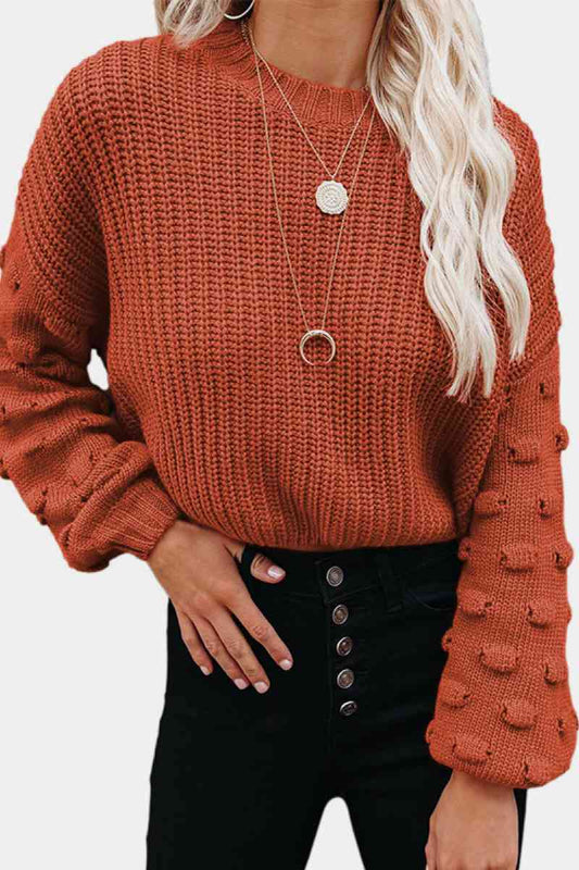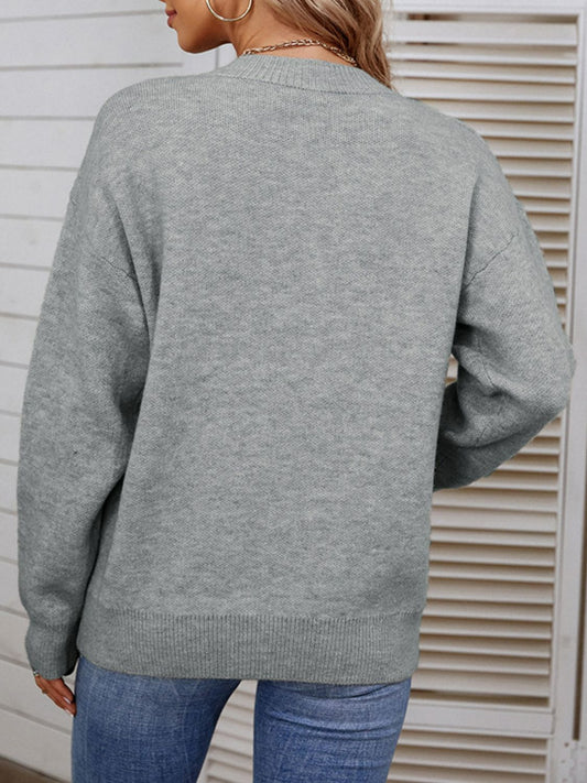 Dropped Shoulder Round Neck Ribbed Trim Sweater