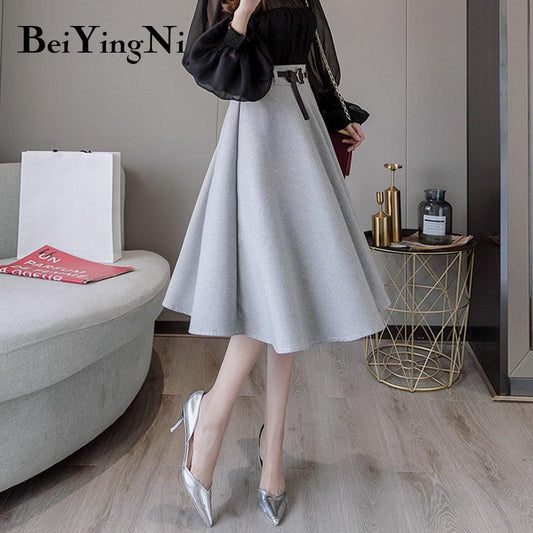 Gorgeous Women Skirt - Belt A Line Swing Elegant High Waist Office Clothes - Ladies Casual Spring Autumn Skirt (D23)(D20)(TB7)(TP6)