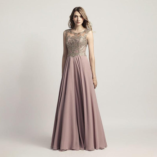 New Arrival Long Prom Dresses - Chiffon Sheer Neck Illusion Back Evening Party Gown - Beading Bodice Formal Women Dress (D30)(BWM)(WSO3)(WSO5)
