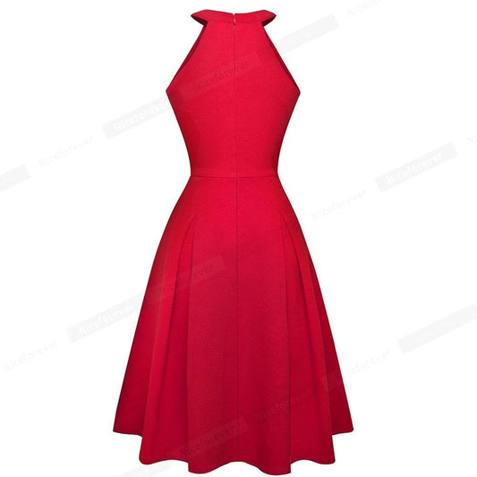 Great Vintage Casual Pure Color Dress - With Key hole A-Line Women Flare Dress (D30)(BWM)(BCD1)(BCD1)