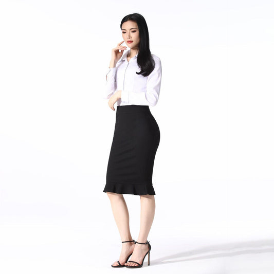 Amazing Cotton Elegant Fishtail Skirt - Plus Size - Spring Solid Short Black Cotton Skirts (D23)(D20)(TB7)(TP6)
